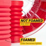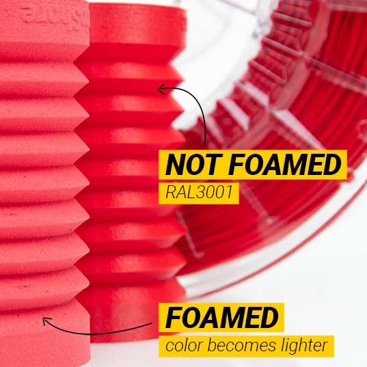 Bei etwa 230 °C wird die Schaumtechnologie aktiviert, die das Material auf das 1,6-fache seines Volumens ausdehnt.